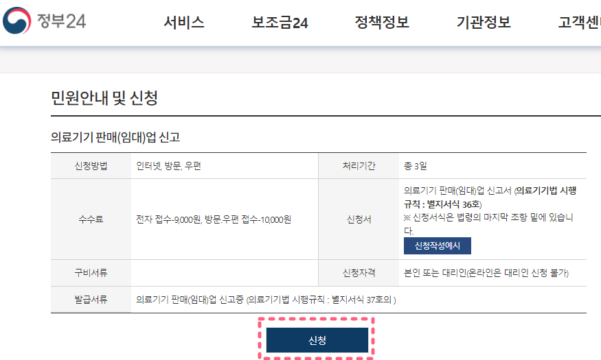 의료기기 판매(임대)업 신고 | 민원안내 및 신청 | 민원24 | 정부24